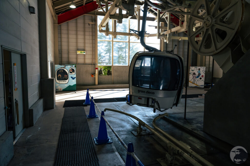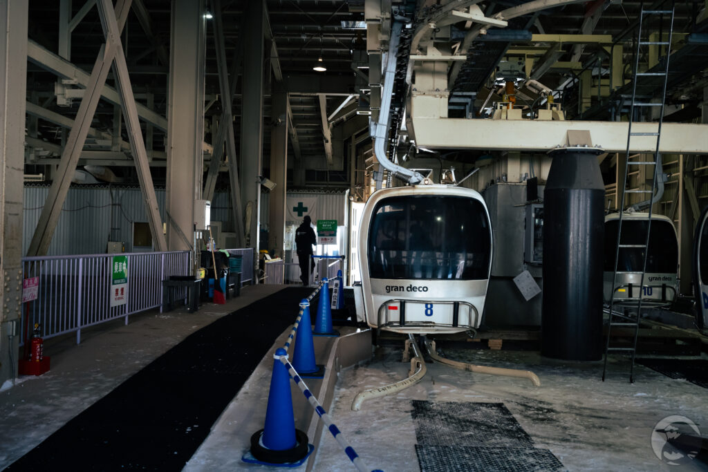 スノーシューを外し身軽になった足でゴンドラに乗り込みます。