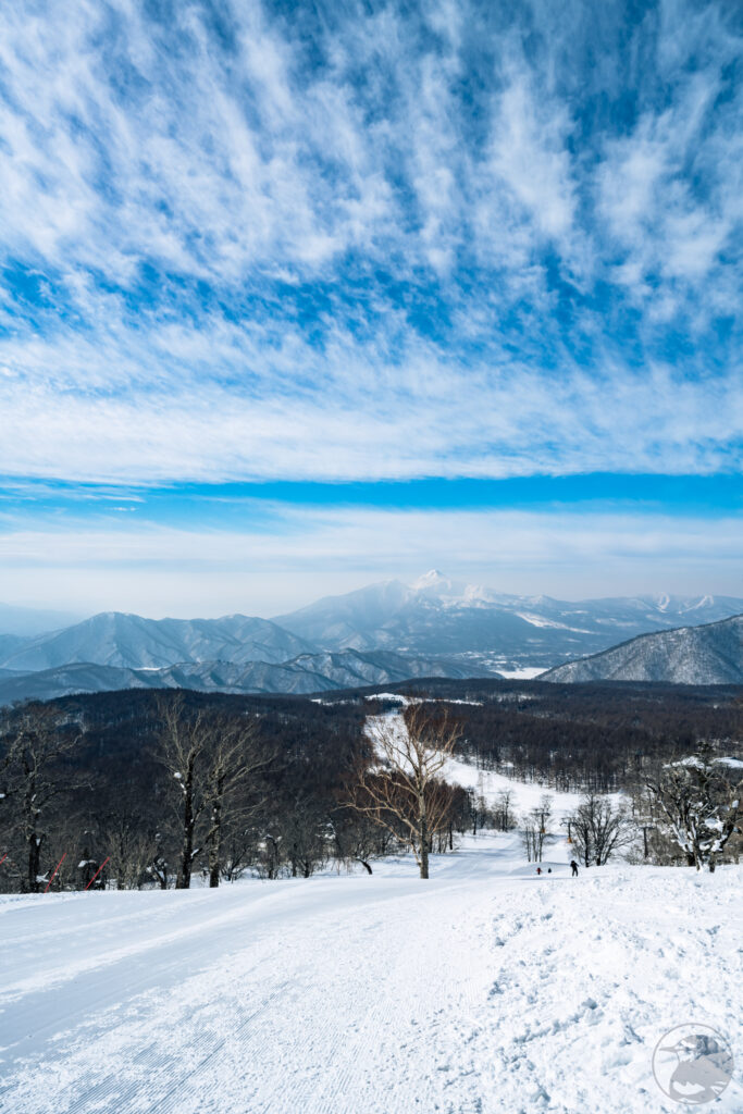 樹林帯を抜けてスキー場に戻ってきました。ここからの景色も見事なものですね。
