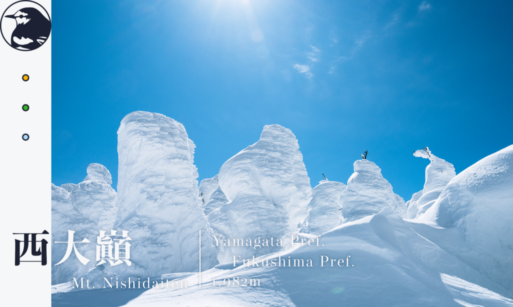 西大巓(にしだいてん)は吾妻山の主峰である西吾妻山の西隣に繋がるピークです。福島県側から見ると西吾妻山の手前に位置しており、広大な樹氷群や360度の大パノラマを楽しむことが出来ます。樹氷鑑賞に訪れる場合はここを経由して西吾妻山まで足を延ばす方が多いですが西大巓までの道のりでも見どころはたくさんあります。