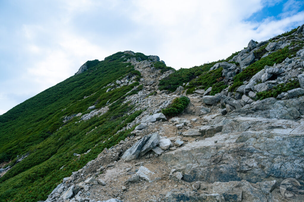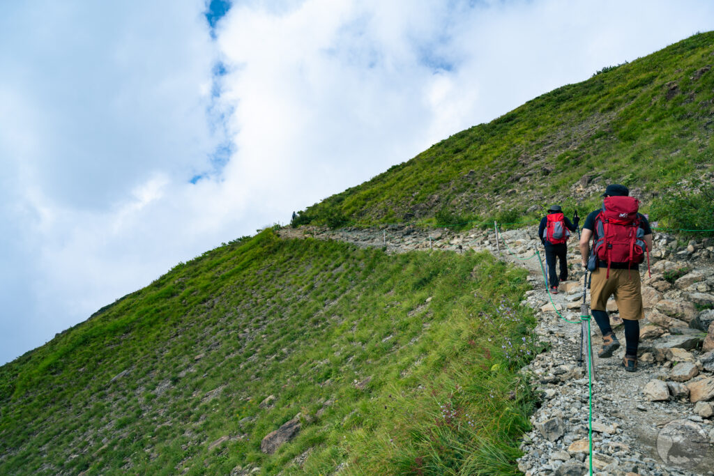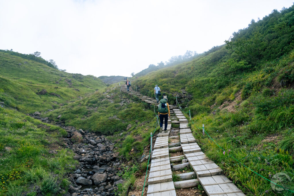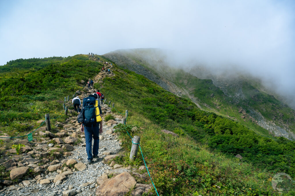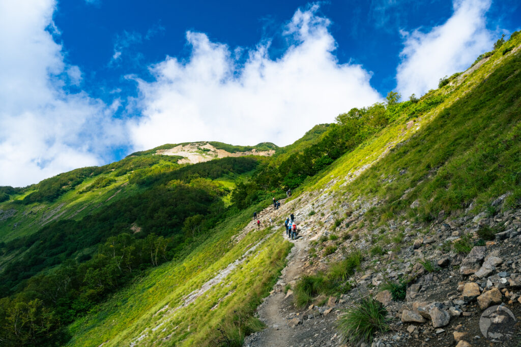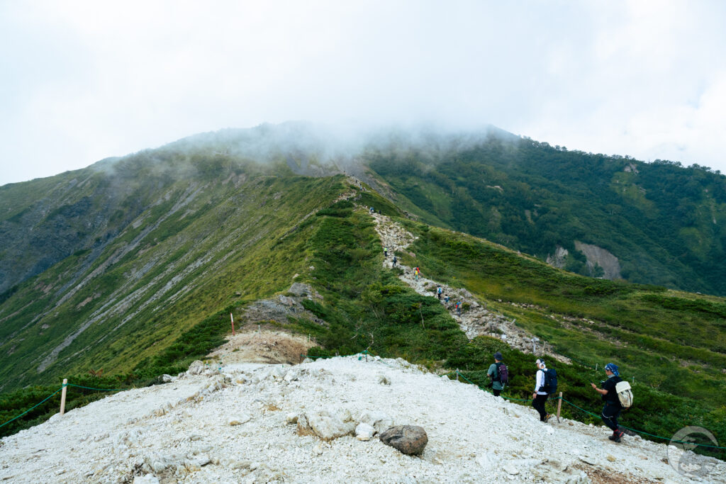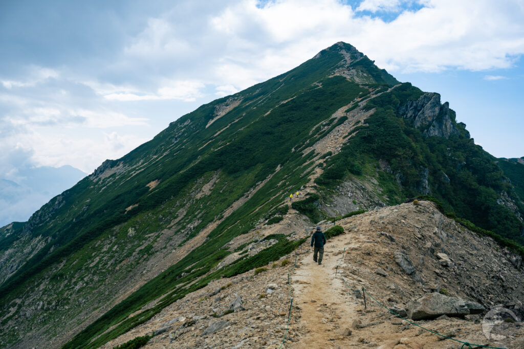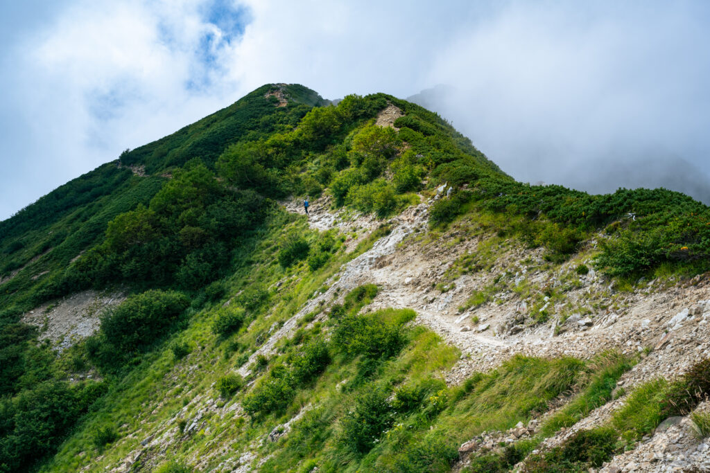 長居していても雲は晴れないと判断して先に進むことにしました。2019年に訪れた際は八方池で引き返したのでここから先は未踏の地です。白馬に一時の別れを告げつつ登っていきます。