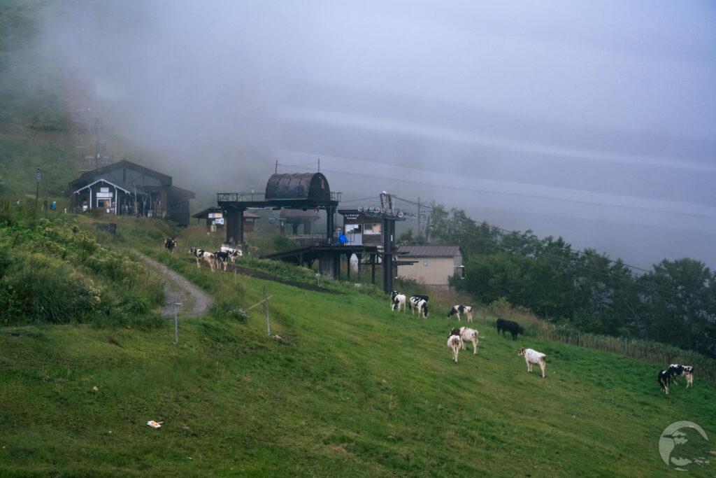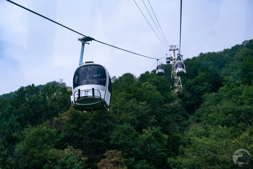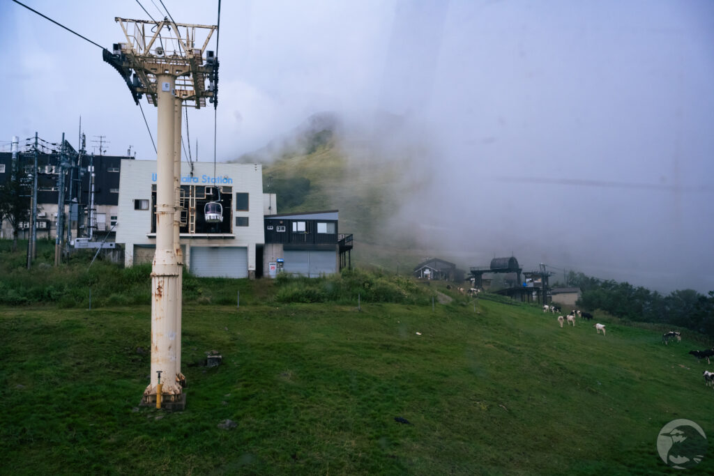 ゴンドラに乗り込みました。ガスが濃くてちょっと不安ですが、晴れるという天気予報を信じます。