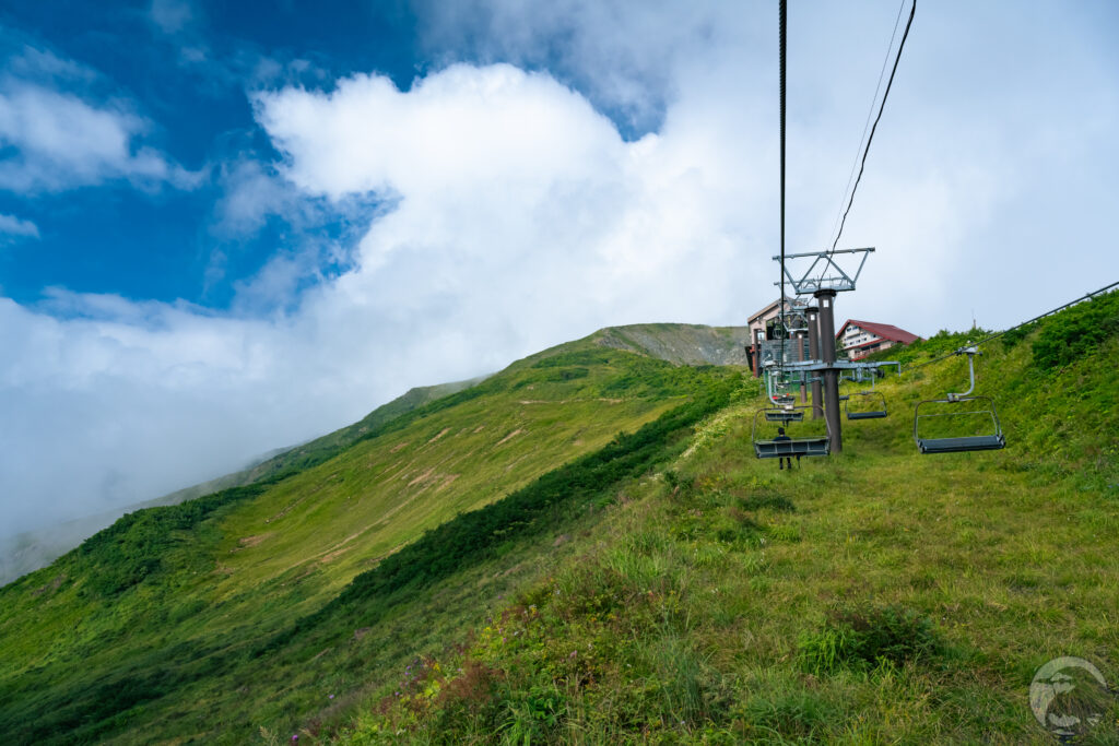 兎平でリフトに乗り換えです。眼下にはオオイタドリとハンゴンソウのお花畑が広がります。