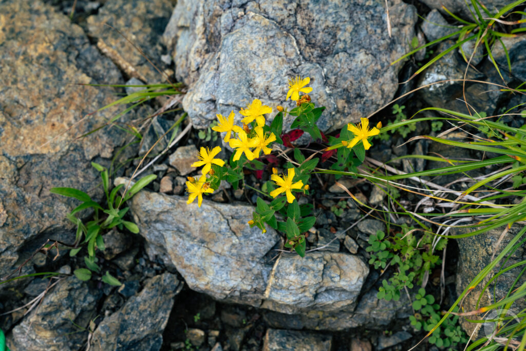 ミヤマコゴメグサやシナノオトギリなどの山野草が歩いてすぐの場所に咲いていました。