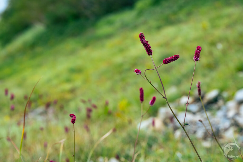 八方尾根に咲くワレモコウの仲間には、ミヤマワレモコウとカライトソウの雑種であるハッポウワレモコウというものがあるらしく、ワレモコウの様な花穂でおしべが萼片より長く伸びるのが特徴です。この花を撮っている時に若干穂が長いのが気になっていたのですが、右の花穂を見るとおしべが長く伸びているのでハッポウワレモコウの可能性が高そうです。花期が終わりに差し掛かっているようで、真ん中の花穂はおしべが全部抜け落ちてどうやっても見分けが付かない状態になっており、もう少し遅ければ確実に見逃していたことでしょう。運がよかったです。