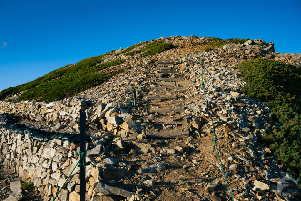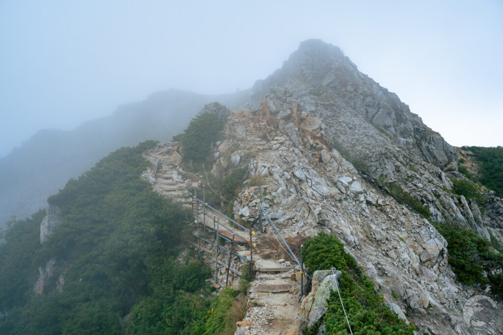 八方尾根は道が安定していましたが、遠見尾根は軽い鎖場の他に一部滑りやすい場所、足場が不安定な場所があって少し怖いと感じることがありました。遠見尾根は技術的難易度こそ高くない道ですが滑落事故が度々起きる場所なので、特に体力を消耗している下りで遠見尾根を選択する場合は注意してください。