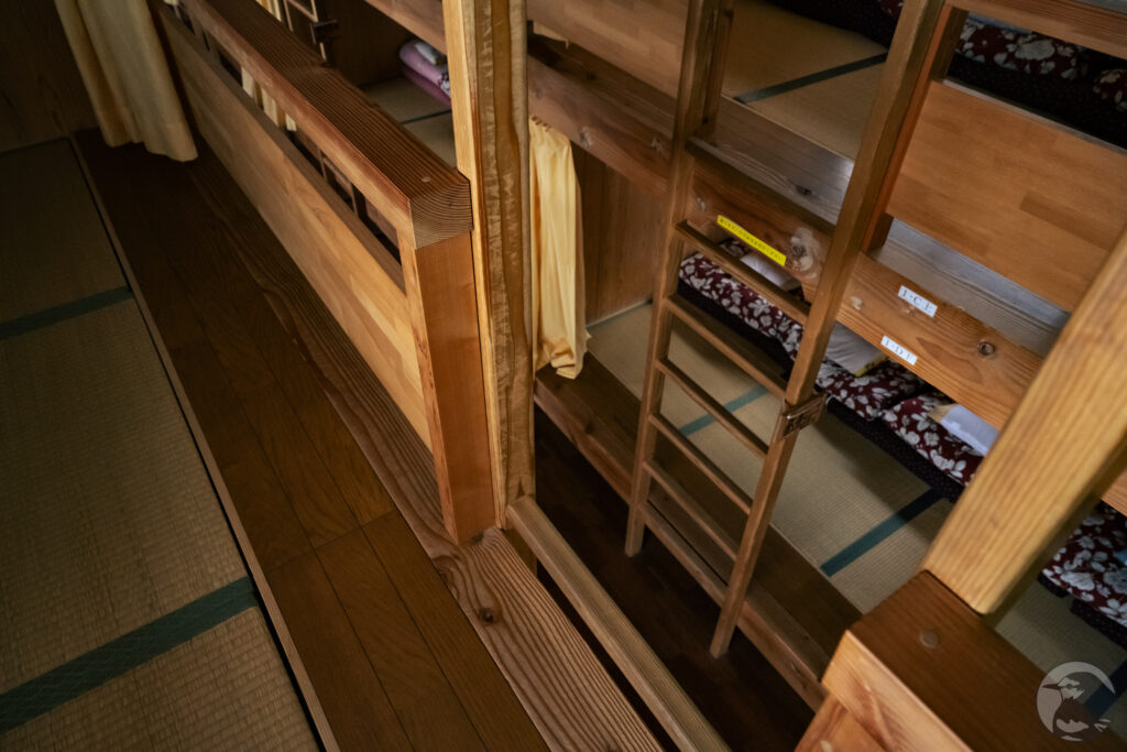 唐松岳頂上山荘は本館・北館・南館の3棟が並んでおり今回は北館に案内されました。ベッドは2段になっており畳敷きで快適です。