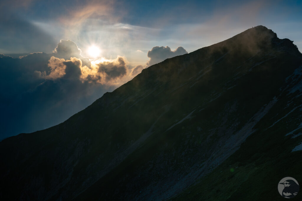南に五竜のシルエットが浮かび上がっていました。まだ見ぬ強敵みたいな演出ですね。明日登るのが楽しみです。