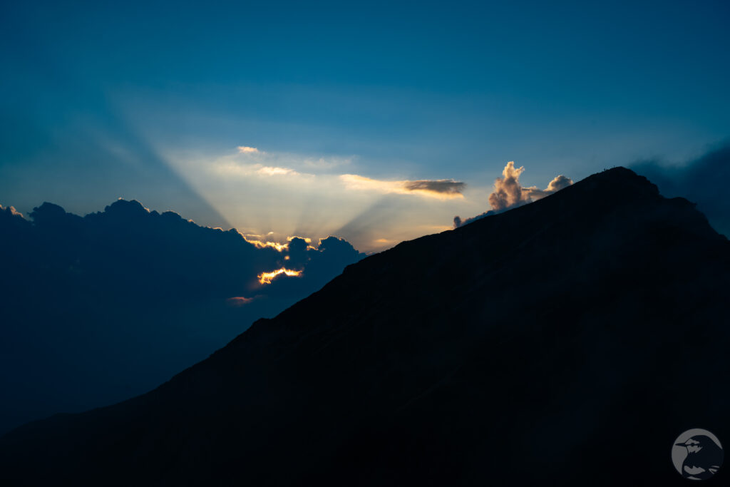 よーし気合い入れて夕日を撮るぞーと三脚立ててフィルター付けて意気込んでたら、西の空は分厚い雲に覆われていて早々に太陽は隠れていきました。残念。でも雲の隙間から立ち上がる陽光が綺麗でした。