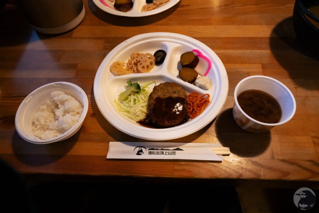 日も沈んだところで小屋に戻って夕飯を頂きました。品数が多いのが嬉しいですね。やっぱり山の上で食べる白ご飯は美味しいです。