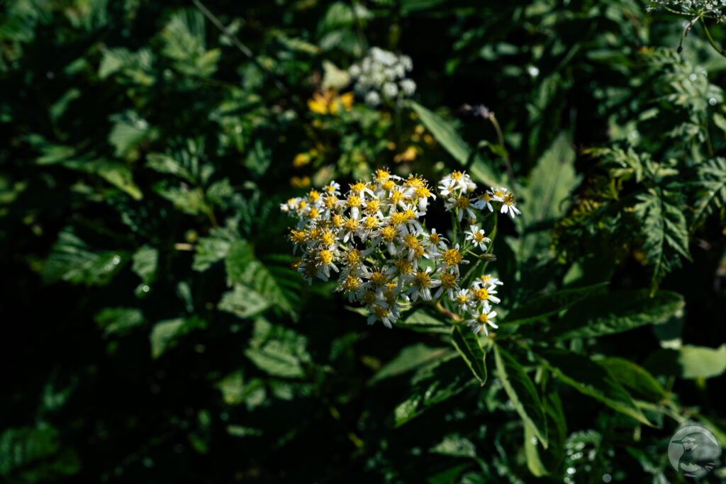 道は大黒岳の辺りで樹林帯を軽く横切る形となり、ゴマナやヤマセンキュウ、ミヤマアキノキリンソウなどこれまで見かけなかった花が咲いていました。