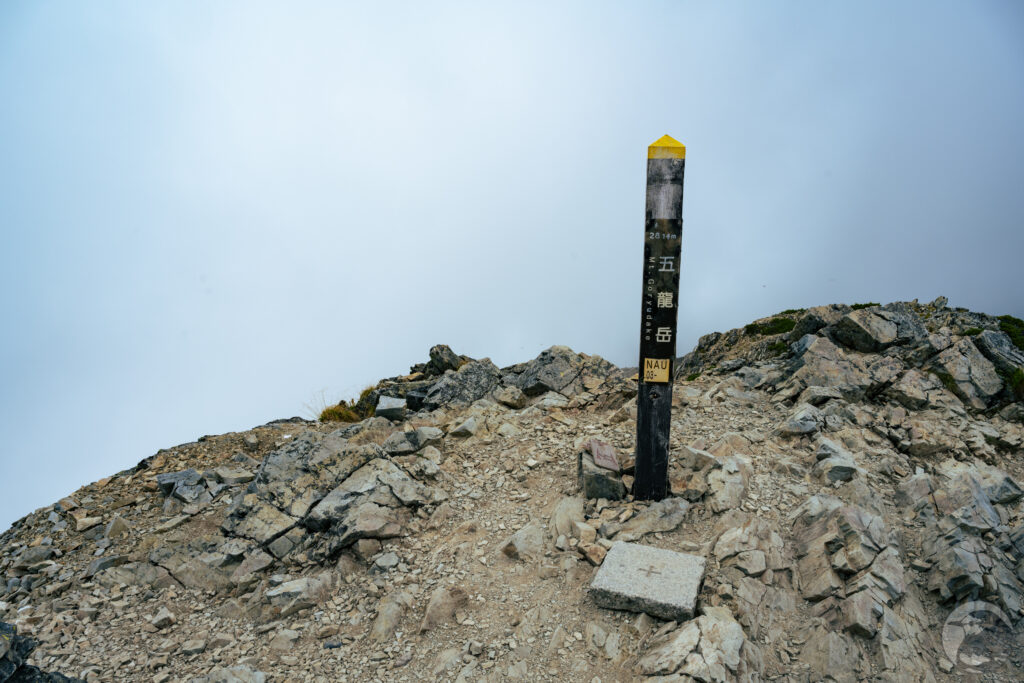 そして遂に登頂、したはいいものの周りは完全にガスに覆われて真っ白です。一足遅かったよ。