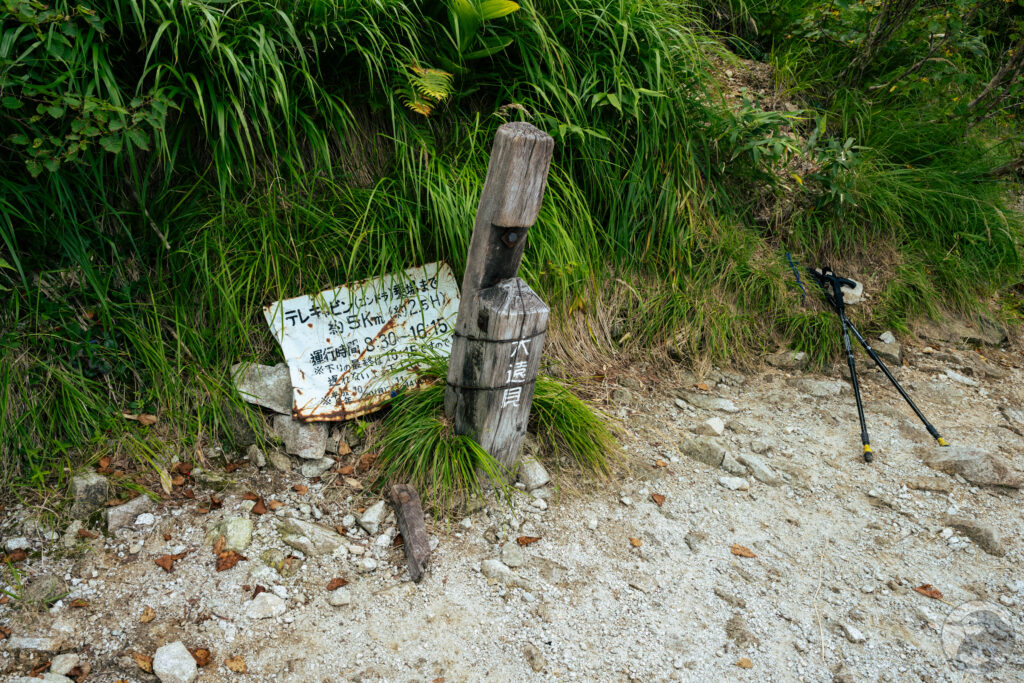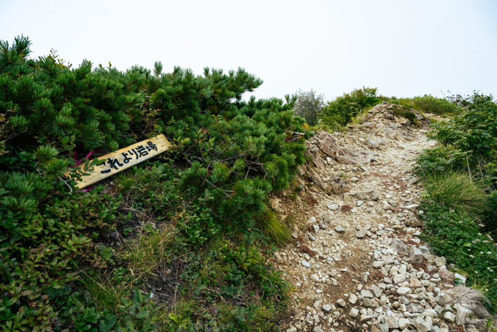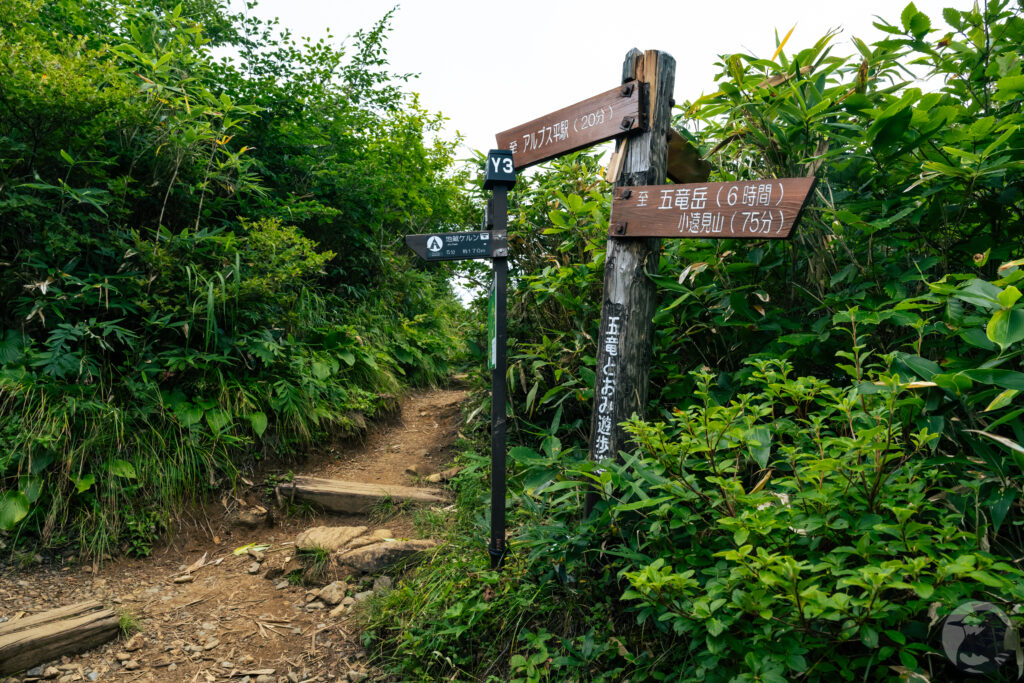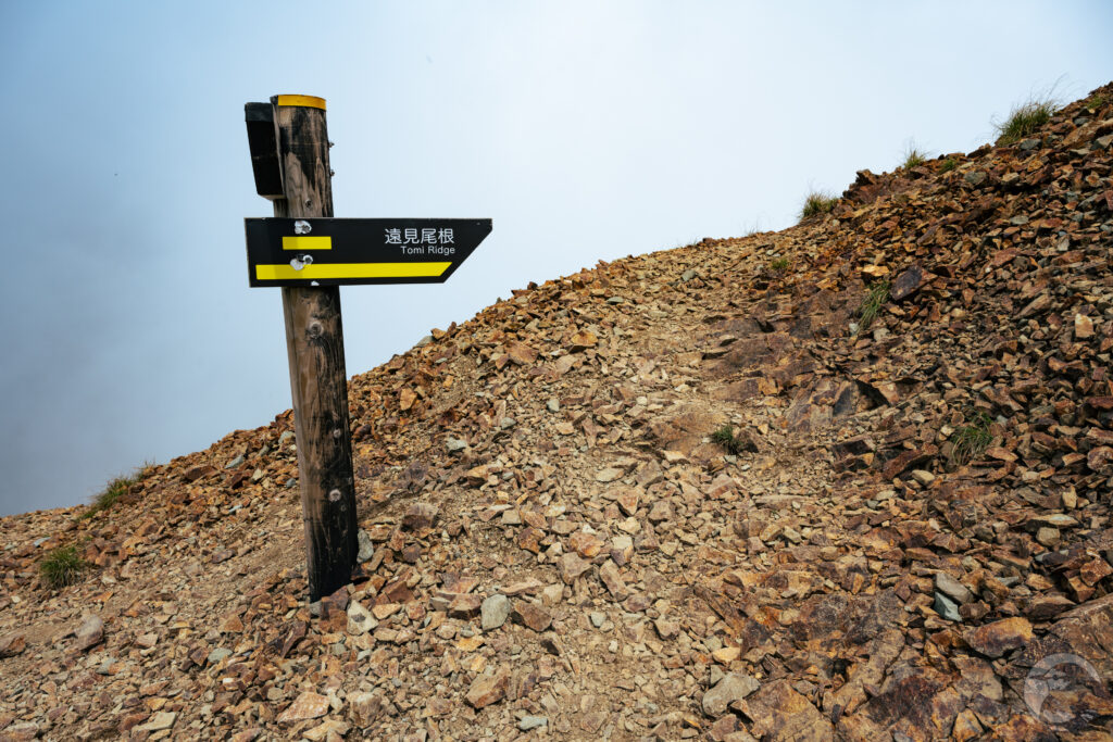 山荘の裏をちょっとだけ登り返して遠見尾根分岐に来ました。ここから下っていきます。