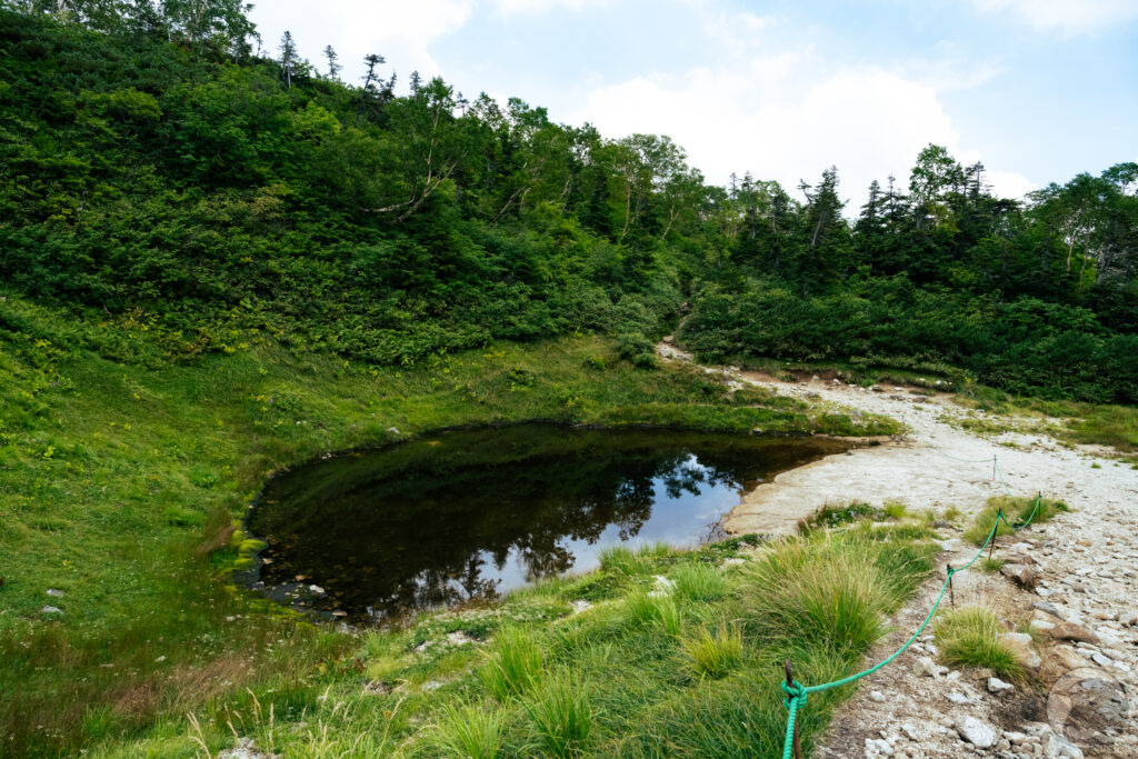西遠見山のピークは気づかぬうちに越えていました。東側には西遠見の池という小さな池がありました。