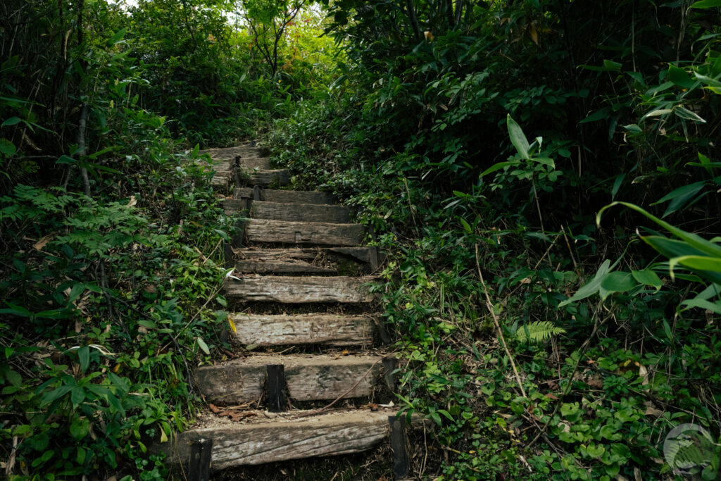 急斜面につけられた階段。結構高度感があって、ここが一番怖かったかもしれません。